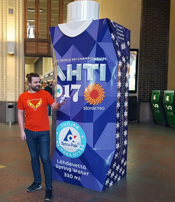 Lahti 2017 MM-hiihdot ovat hiihtokansan seuratuin talvitapahtuma Lahdessa. Tetrapak tarjoaa vettä janoiselle urheilukansalle ympäristöystävällisestä kartonkipakkauksesta. Helsingin rautatieaseman kolmemetrinen 3D-purkkisuurennos ohjaa hiihtokansan Lahteen. Orle toivottaa hyviä kisapäiviä vieraille.